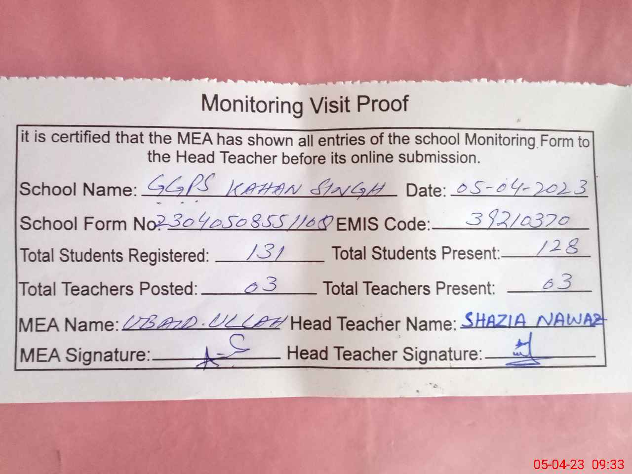 | EMIS Code: 39210370 | Name of School: GGPS KAHAN SINGH | |||