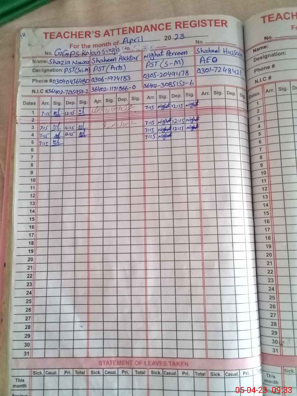 | 36**** | Sh**** Ak**** | PST | Regular | 3 | 0 | 0 | 0 | 0 | 0 | 0 | 0 | 3 | Exam Duty |