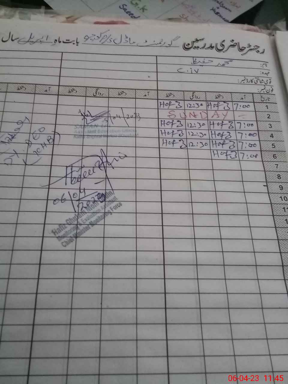 | Name: Kh**** Bi**** Designation: (School Headmaster's/Headmistress's) PST Phone/Cell Number: 03**** |