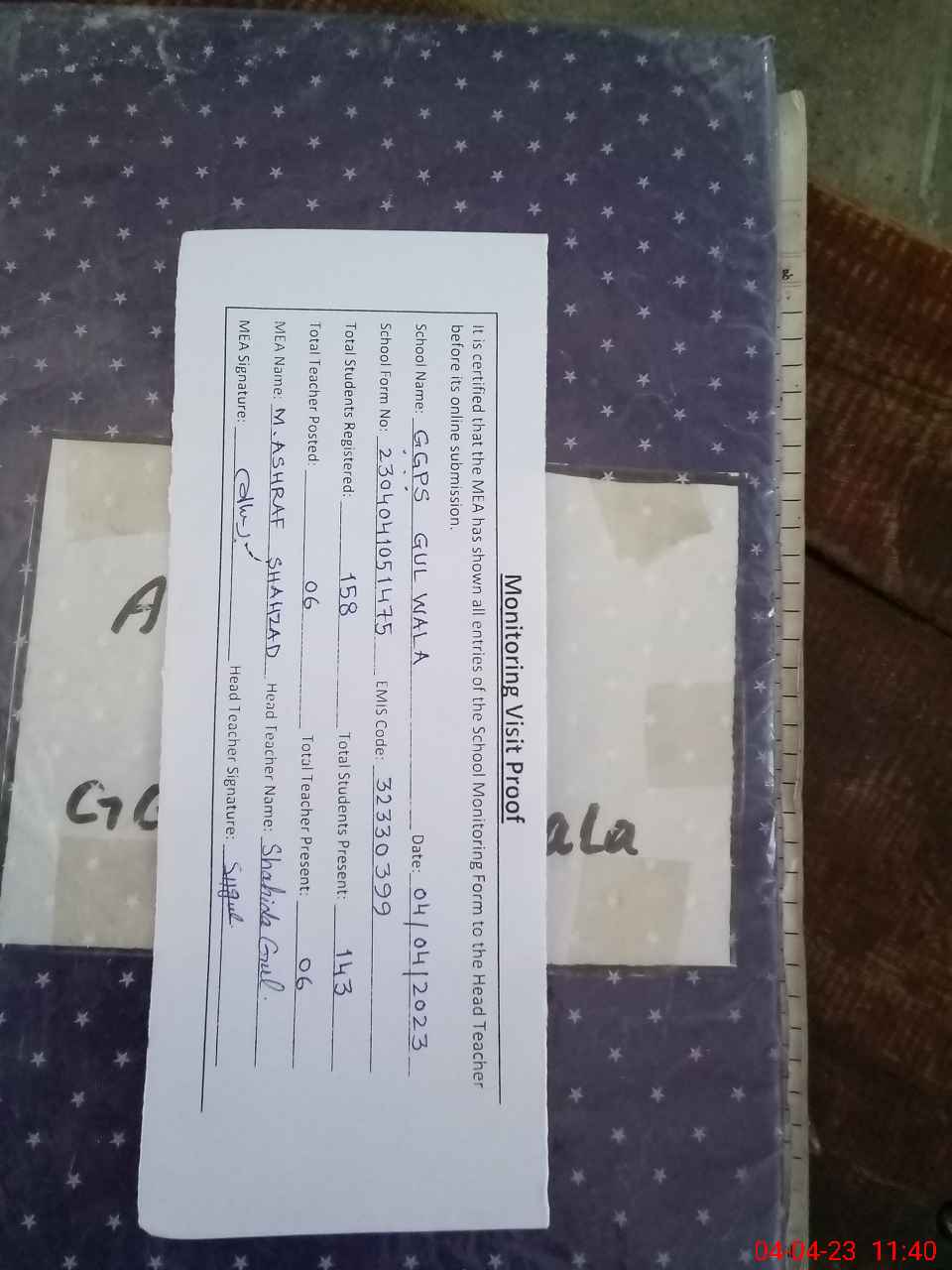 | EMIS Code: 32330399 | Name of School: GGPS GULL WALA | |||