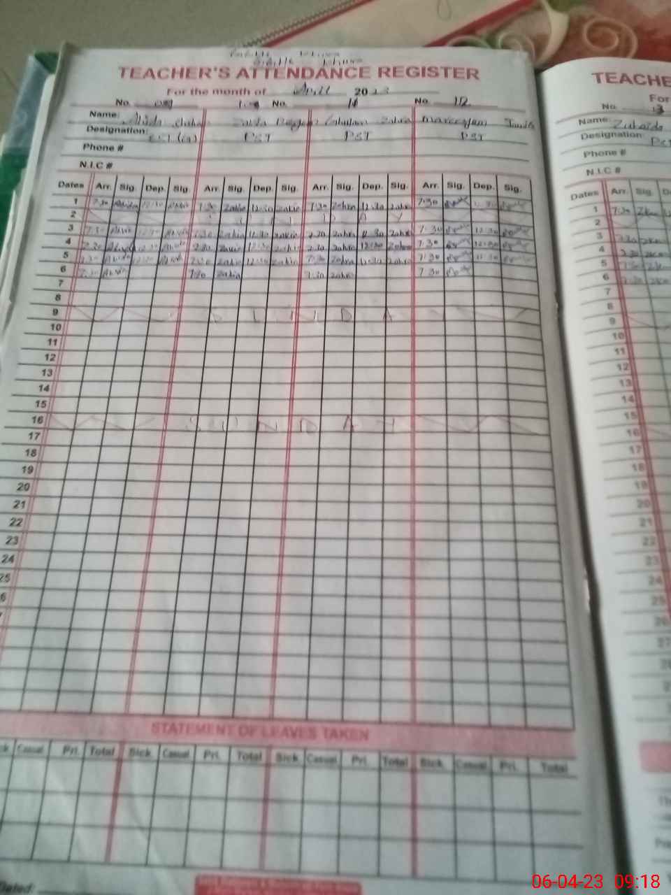 | Name: Ta**** Ak**** Designation: (School Headmaster's/Headmistress's) S.S.T.(GEN) Phone/Cell Number: 03**** |