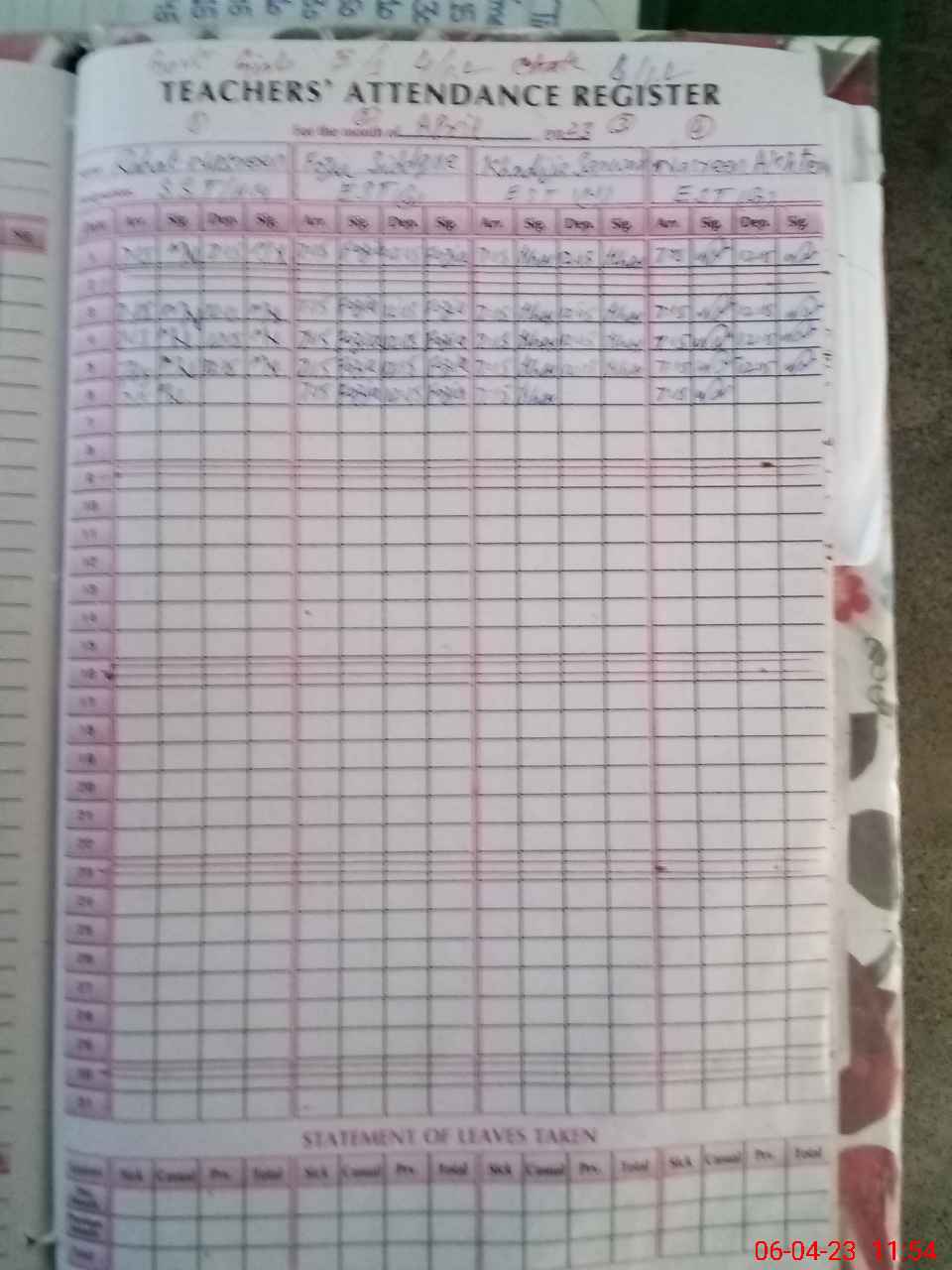 | Leave | Duty | Absent | Maternity | Medical | Ex- Pak |