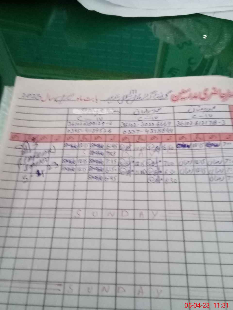 | CNIC | Full Name | Designation | R/C | Absence During Last Calender Month |