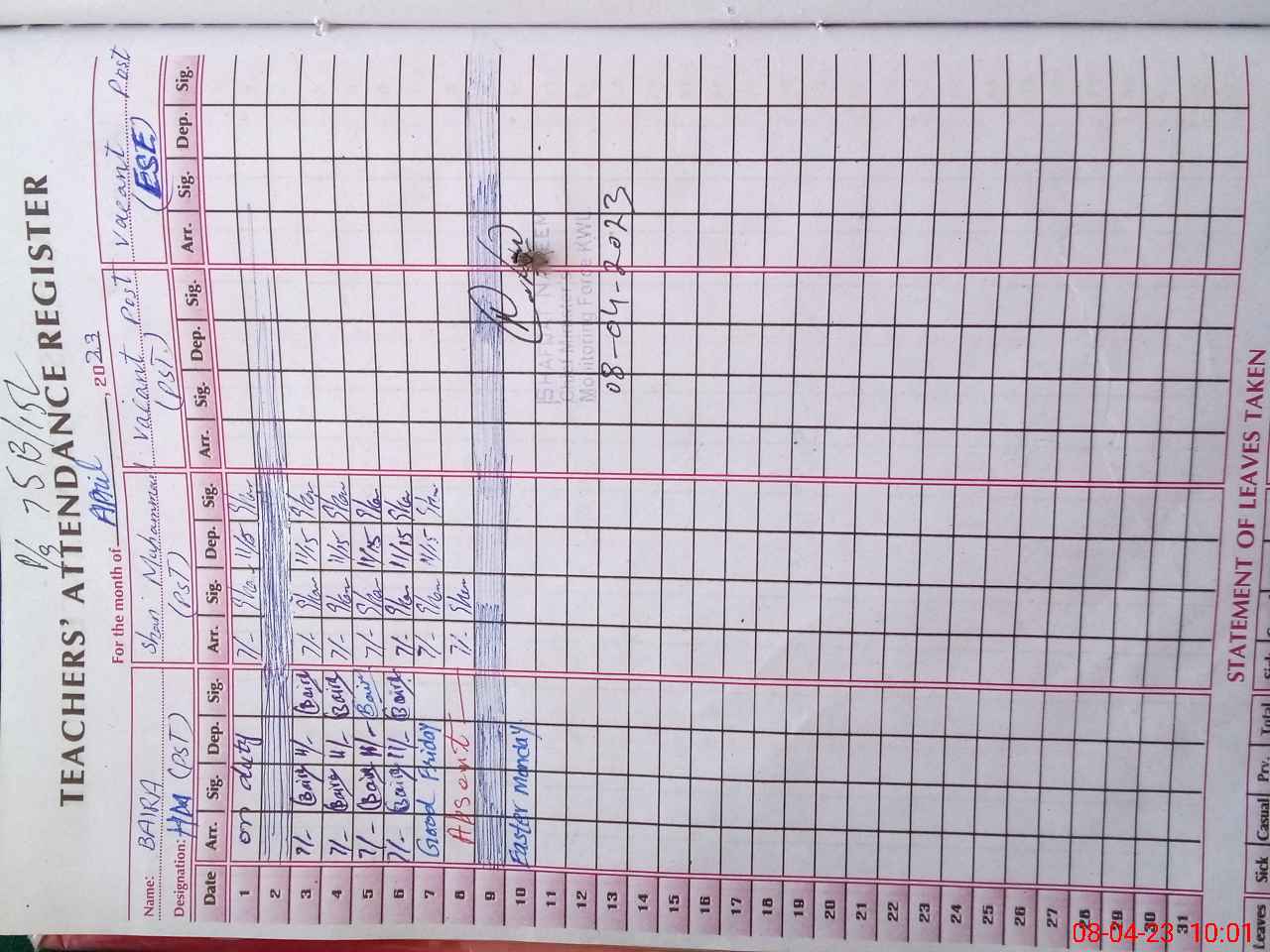 | Name: Sh**** Mu**** Designation: (School Headmaster's/Headmistress's) PST Phone/Cell Number: 03**** |