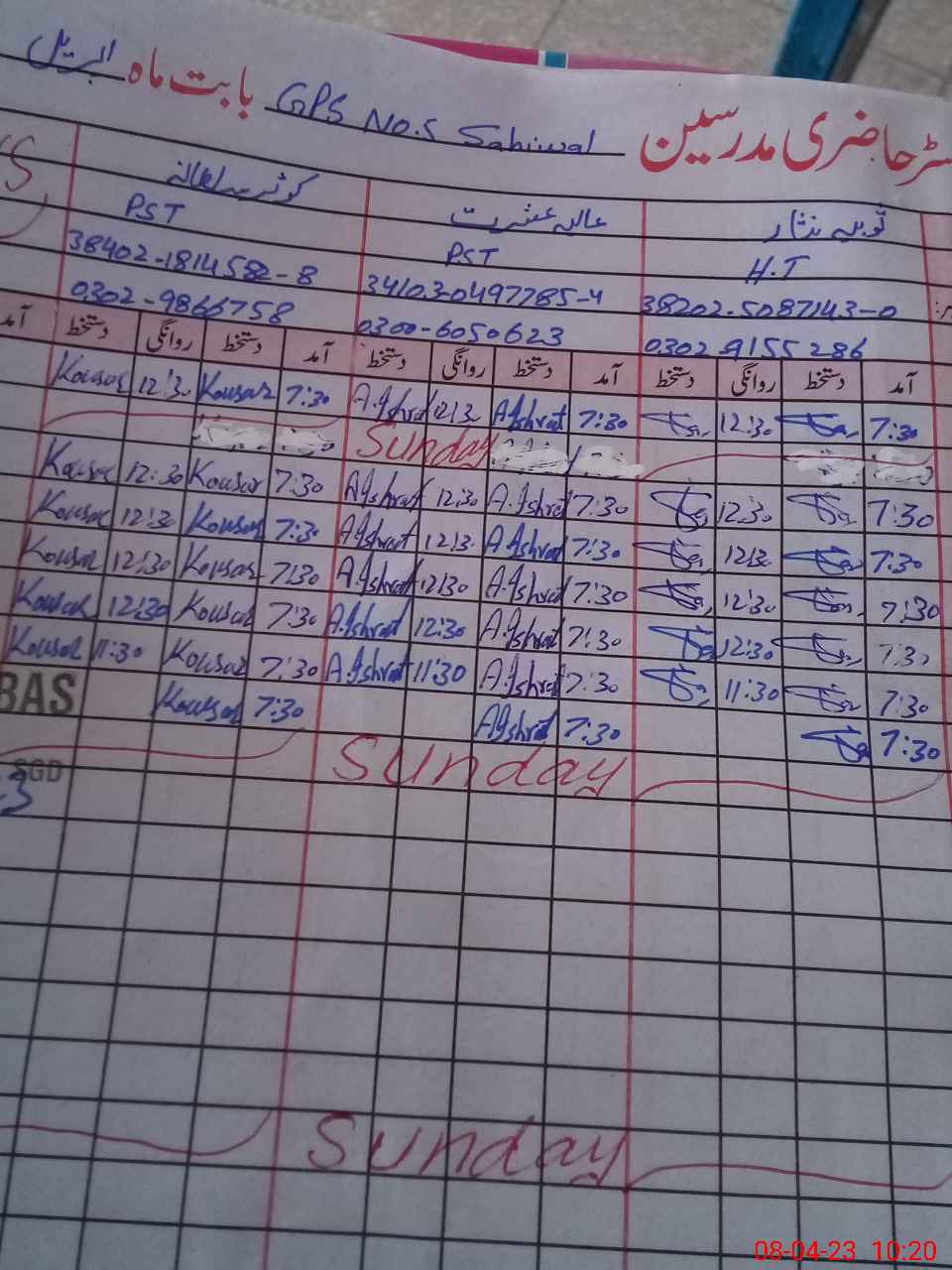 | EMIS Code: 38450215 | Name of School: GPS NO.5 SAHIWAL | |||