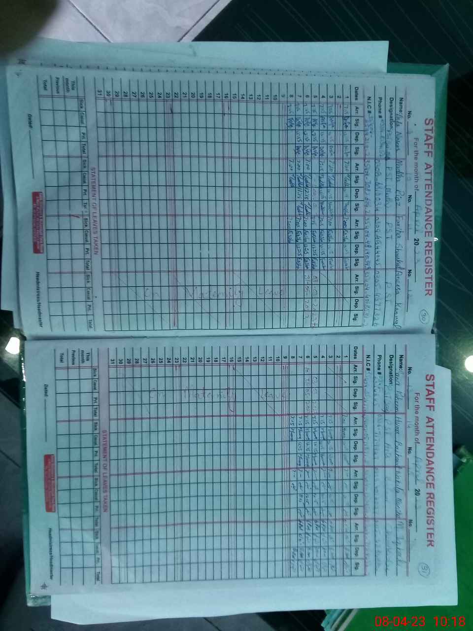 | 34**** | Sa**** Ra**** | ESE | Contract | 0 | 0 | 0 | 0 | 0 | 0 | 0 | 0 | 0 | Absent (Un-Authorized) |