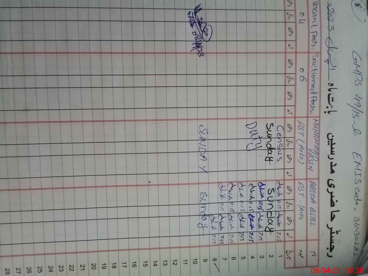 | Name: Ab**** Bi**** Designation: (School Headmaster's/Headmistress's) ESE (Arts) Phone/Cell Number: 03**** |