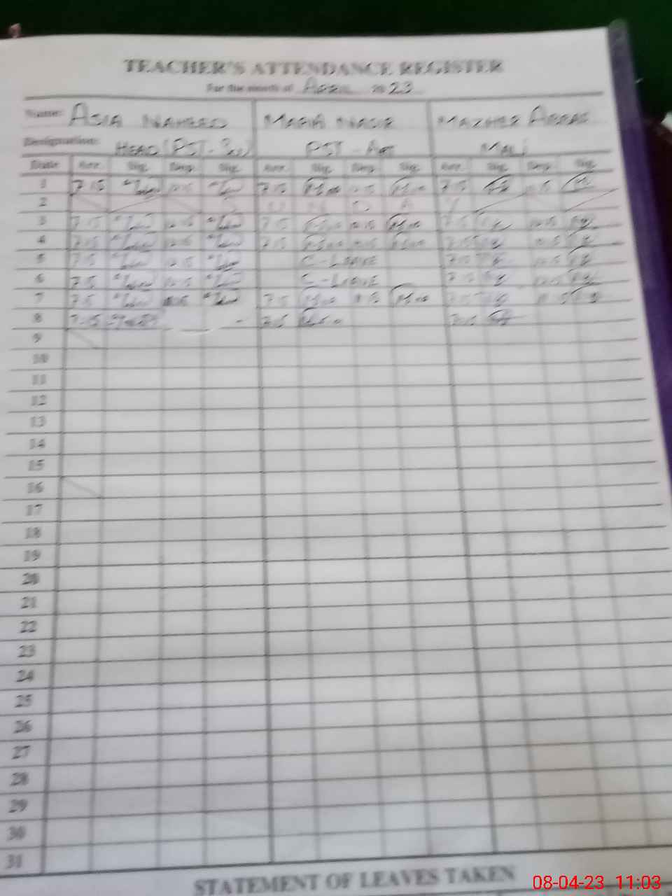 | Name: AA**** NA**** Designation: (School Headmaster's/Headmistress's) PST Phone/Cell Number: 03**** |