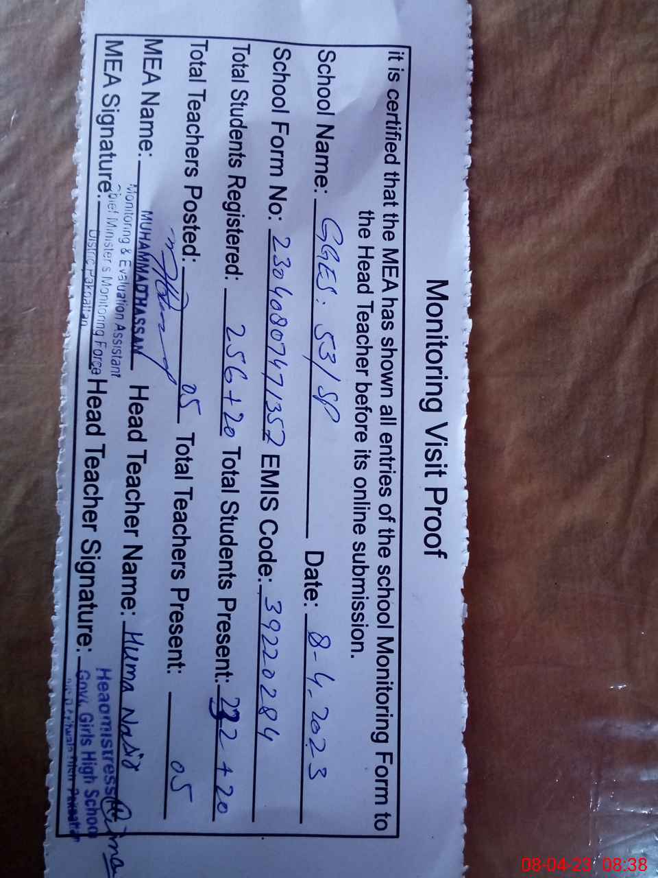 | EMIS Code: 39220284 | Name of School: GGES 53 SP POST OFFICE JEVEN SHAH | |||