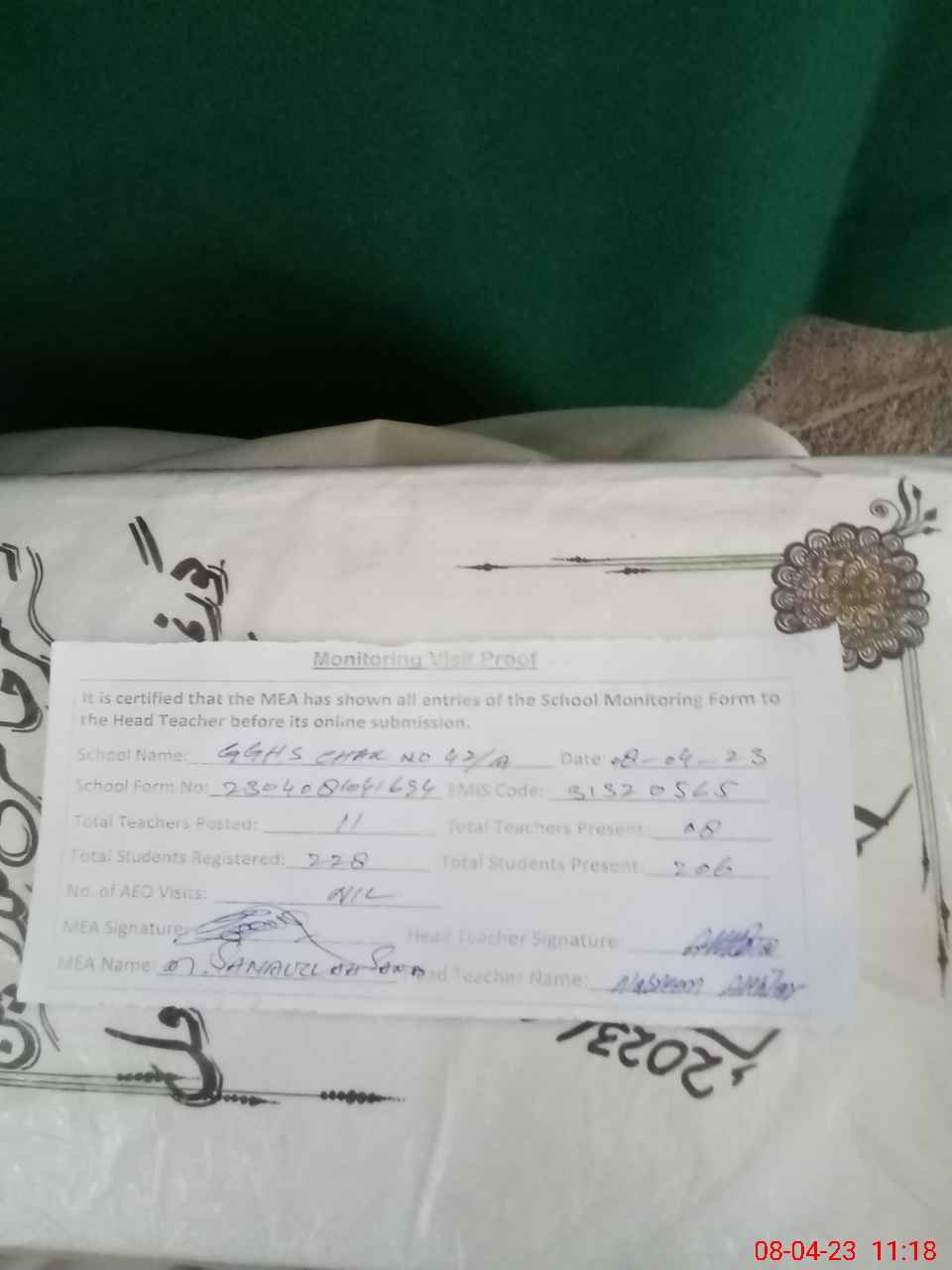 | EMIS Code: 31320565 | Name of School: GGHS CHAK 42/A | |||