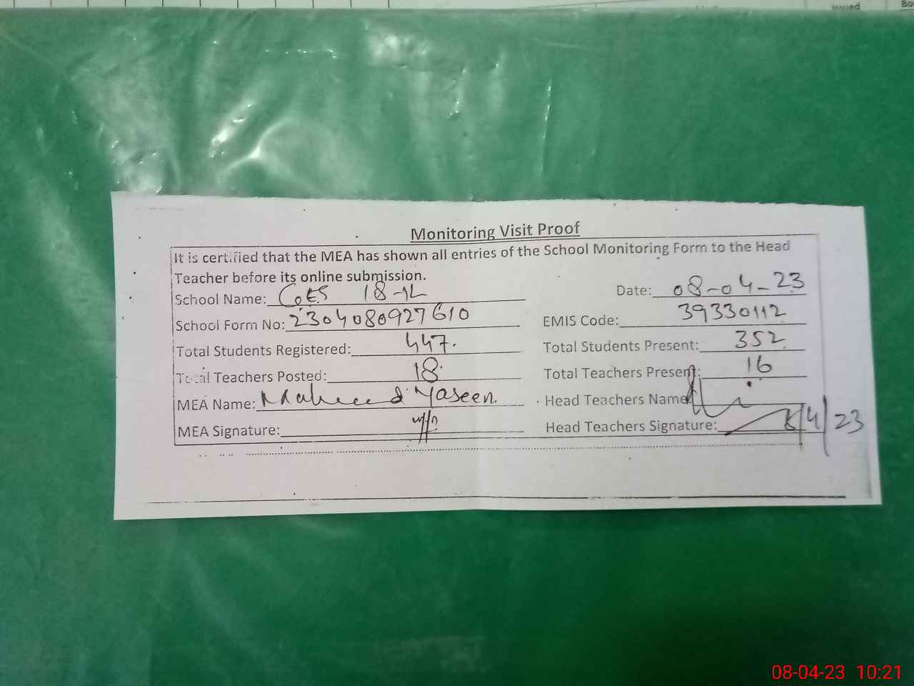 | EMIS Code: 39330112 | Name of School: GES CHAK 18/1-L | |||