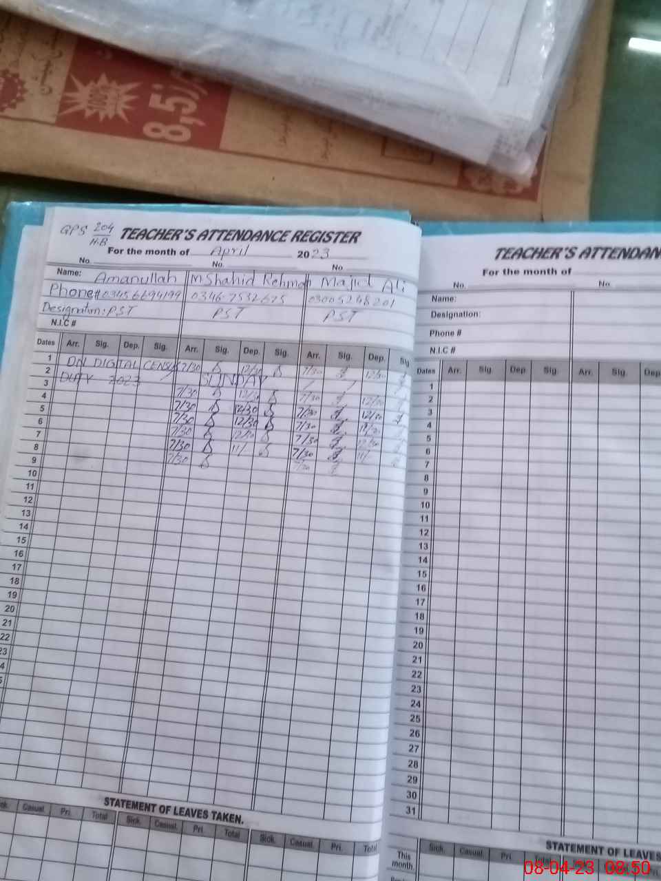 | Name: Mu**** Sh**** Re**** Designation: (School Headmaster's/Headmistress's) Pst Phone/Cell Number: 03**** |