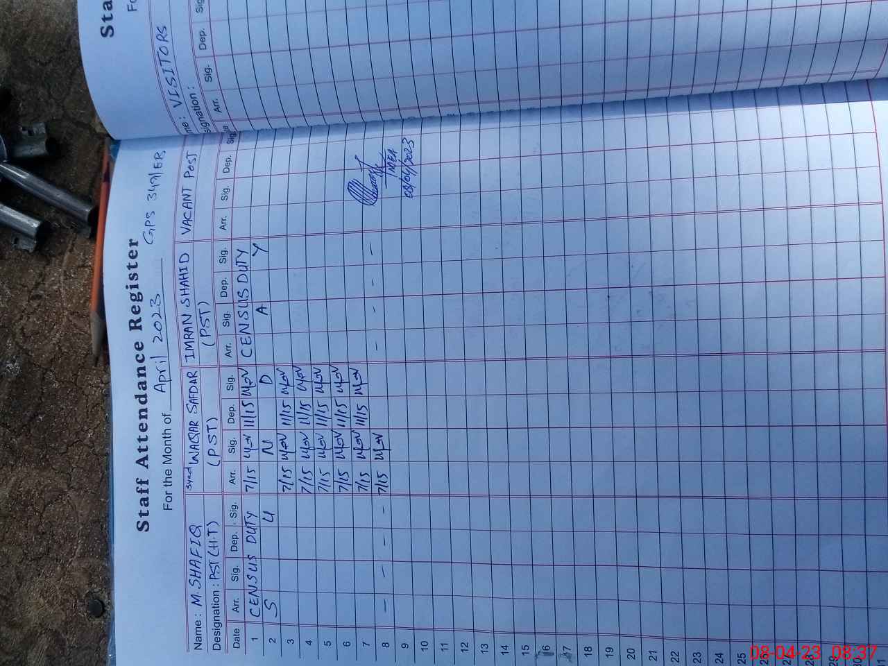 | Name: IM**** SH**** Designation: (School Headmaster's/Headmistress's) PST Phone/Cell Number: 03**** |