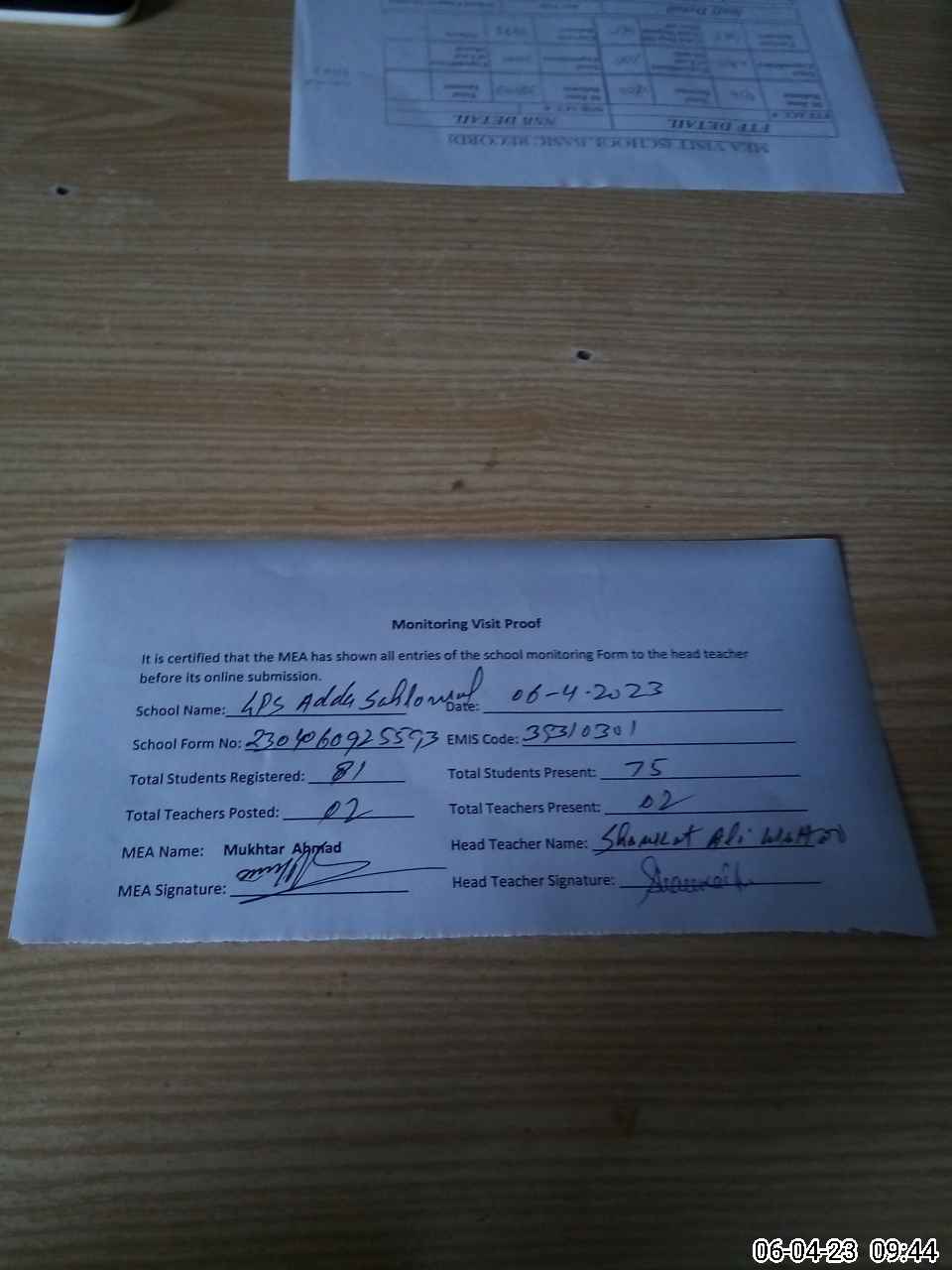 | Certified that this School was Inspected by the Undersigned MEA/DMO Today and the Information Stated Above is as Per Record. | |||||