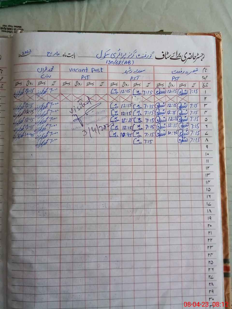 | Name: Qa**** Ri**** Designation: (School Headmaster's/Headmistress's) PTC/JV Phone/Cell Number: 03**** |