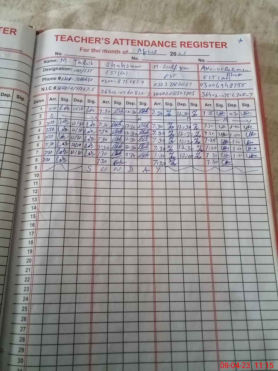 | Name: MU**** TA**** Designation: (School Headmaster's/Headmistress's) SST GENERAL Phone/Cell Number: 03**** |