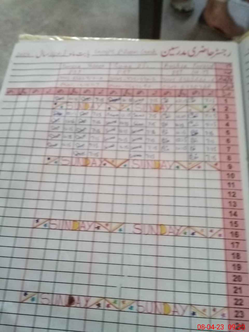 | CNIC | Full Name | Designation | R/C | Absence During Last Calender Month |