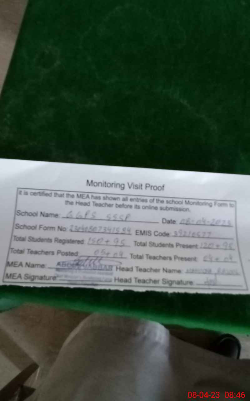 | Attendance Register | Head Teacher | MEA with School | Visit Proof |