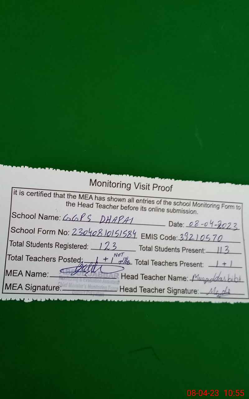 | EMIS Code: 39210570 | Name of School: GGPS DHAPAI | |||