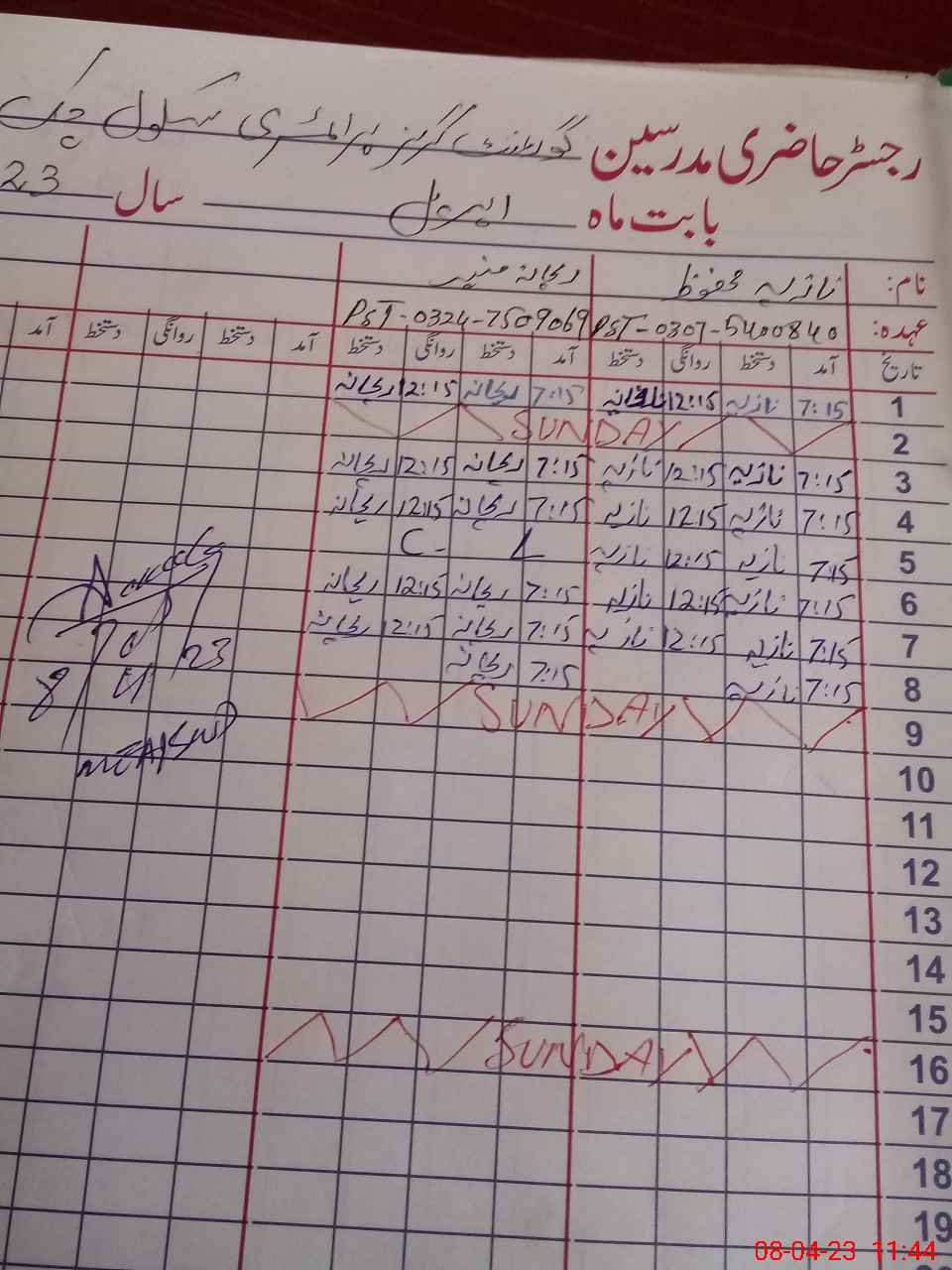 | CNIC | Full Name | Designation | R/C | Absence During Last Calender Month |