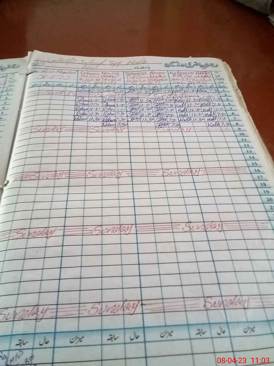 | CNIC | Full Name | Designation | R/C | Absence During Last Calender Month |