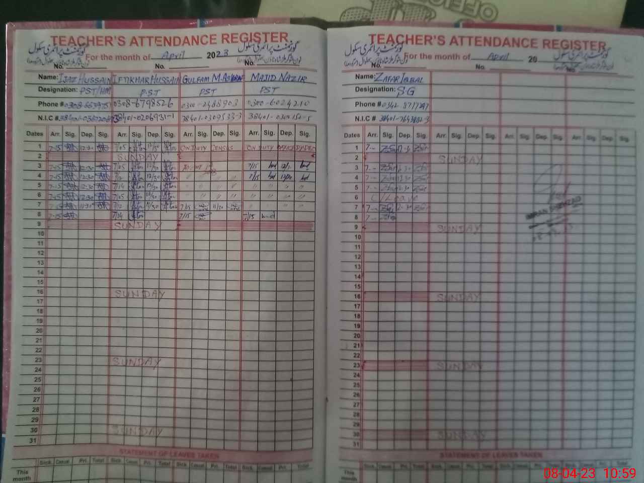 | Name: IJ**** HU**** Designation: (School Headmaster's/Headmistress's) PST Phone/Cell Number: 03**** |