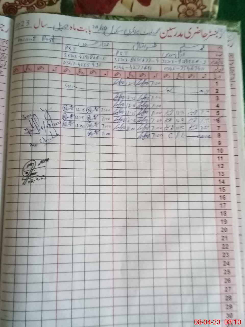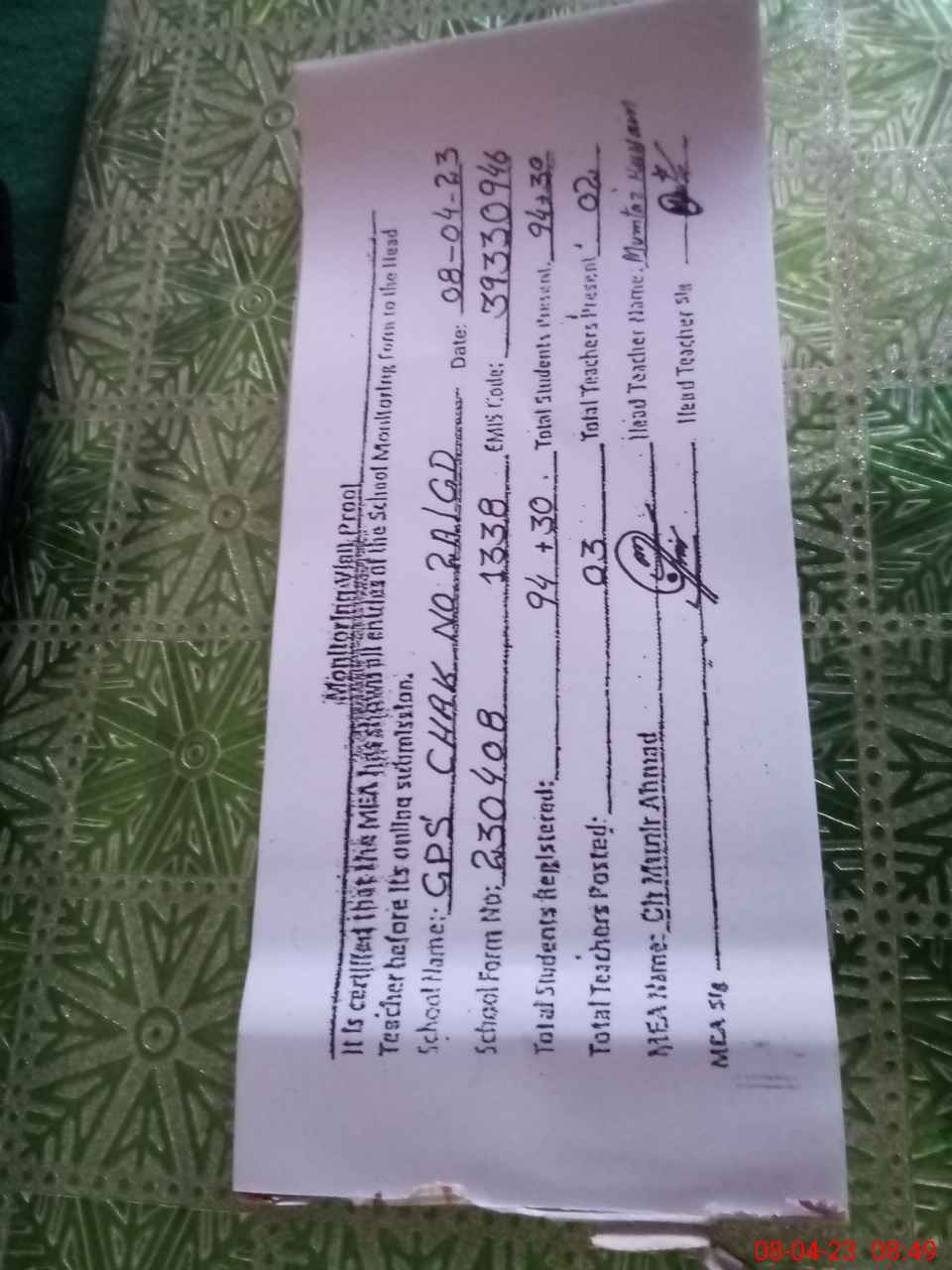 | Name: MU**** HU**** Designation: (School Headmaster's/Headmistress's) Headmaster Phone/Cell Number: 03**** |