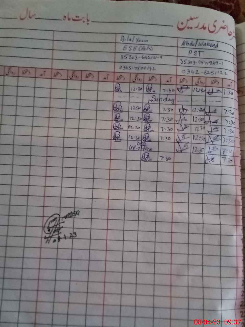 | Name: AB**** WA**** Designation: (School Headmaster's/Headmistress's) PST Phone/Cell Number: 03**** |