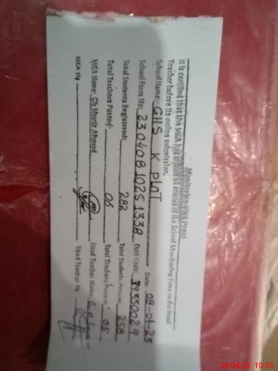 | EMIS Code: 39330029 | Name of School: GHS K PLOT | |||