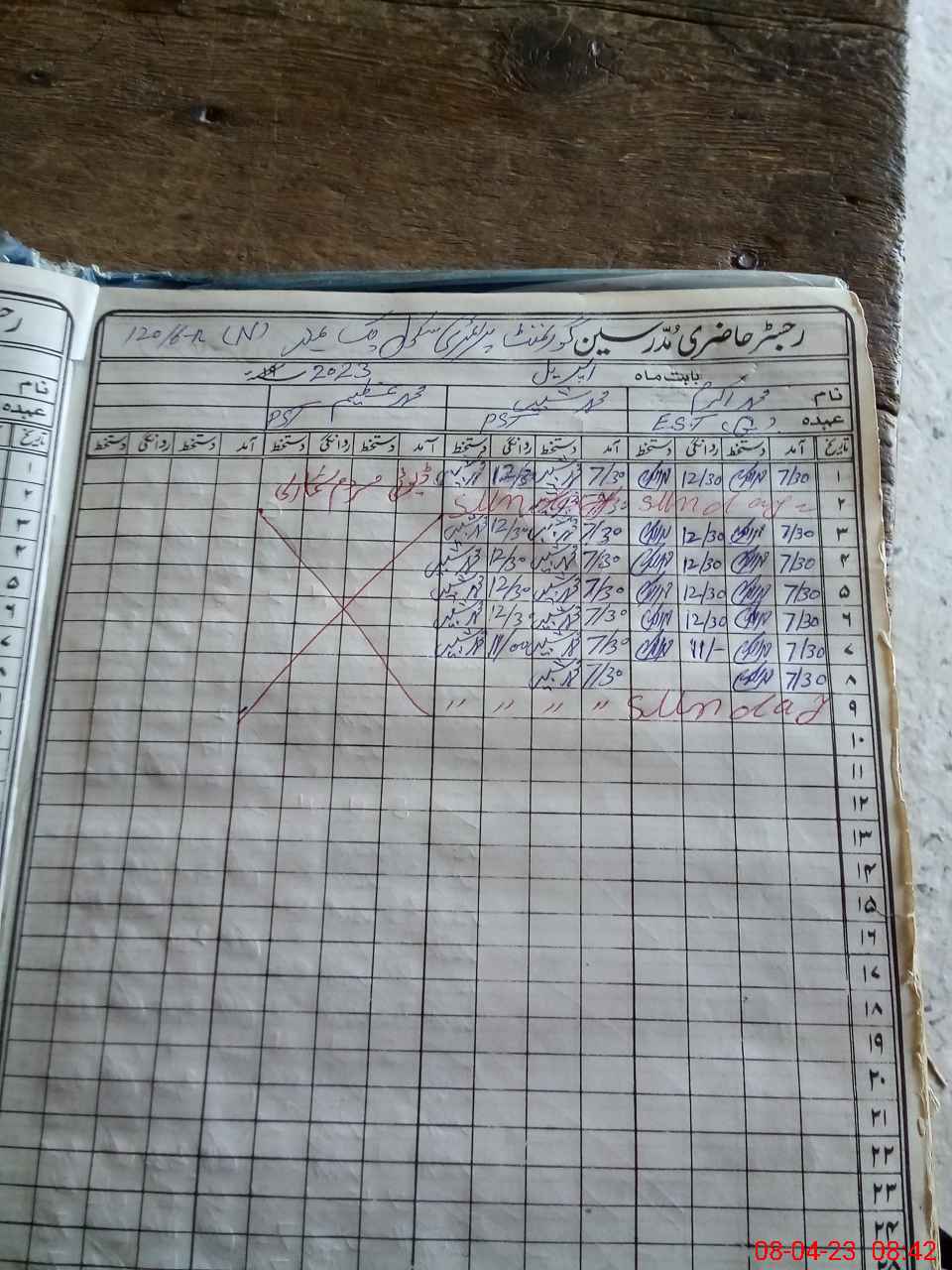 | CNIC | Full Name | Designation | R/C | Absence During Last Calender Month |
