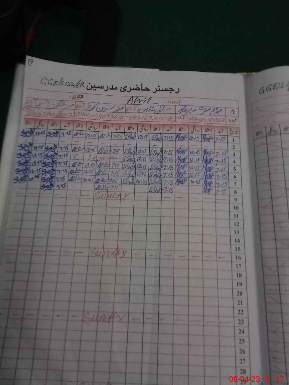 | 31**** | Sa**** Am**** | PST | Regular | 0 | 0 | 0 | 0 | 0 | 0 | 0 | 0 | 0 | Exam Duty |