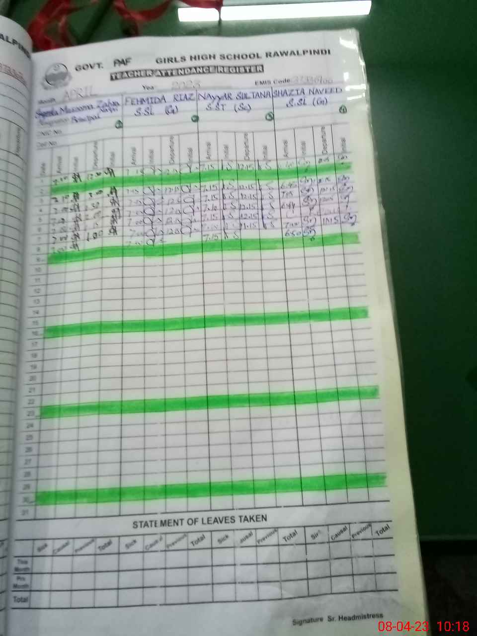 | EMIS Code: 37330700 | Name of School: GGHS PAF BASE CHAKLALA | |||