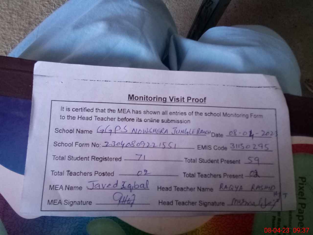 | EMIS Code: 31150295 | Name of School: GGPS NOSHERA JANGLE RAKH | |||