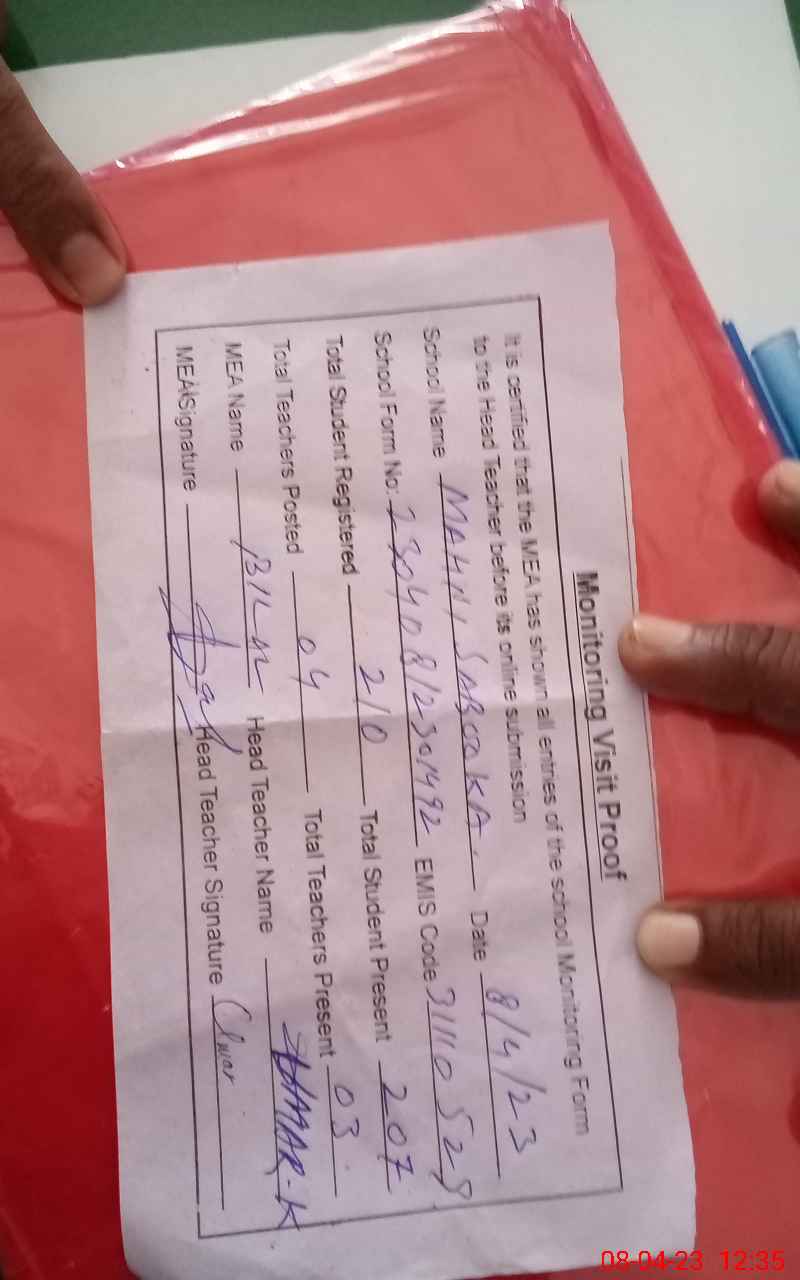 | Attendance Register | Head Teacher | MEA with School | Visit Proof |