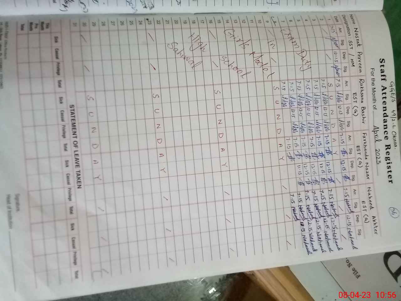 | 35**** | Na**** Ha**** | PST | Regular | 2 | 0 | 0 | 0 | 0 | 0 | 0 | 0 | 2 | Exam Duty |