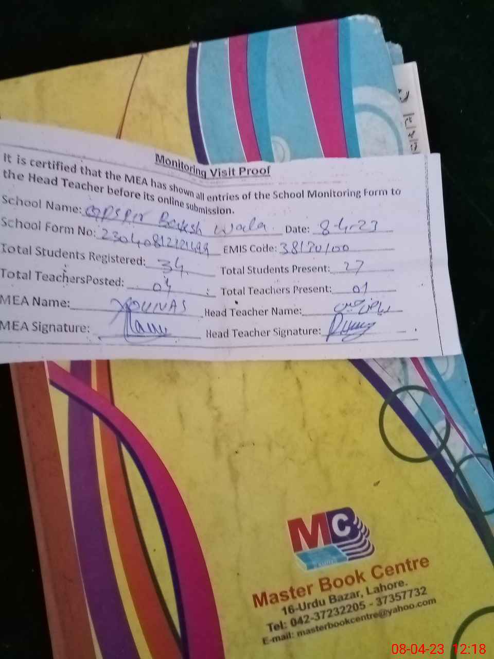 | EMIS Code: 38130100 | Name of School: GPS PIR BUKHSH WALA | |||