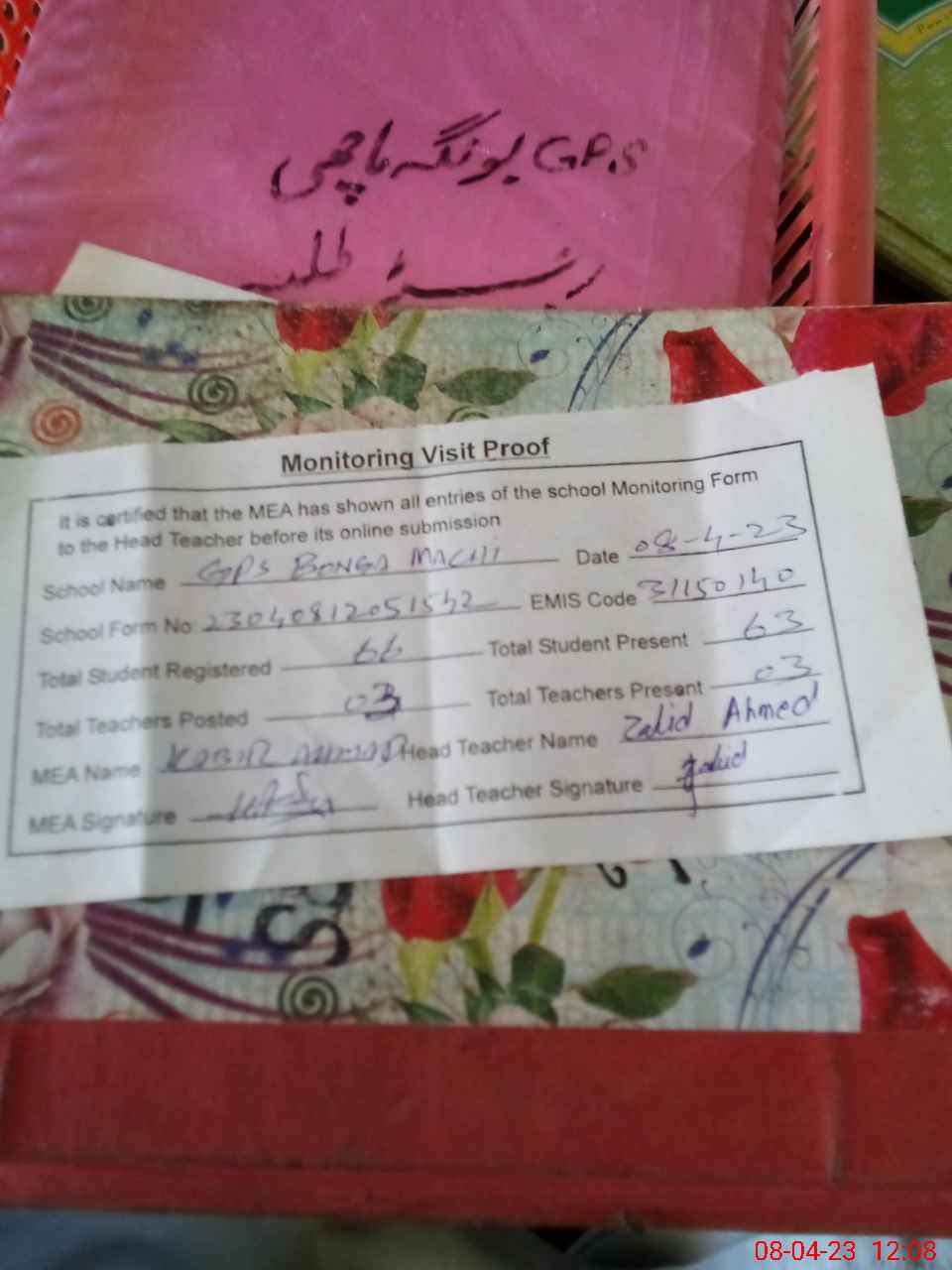| EMIS Code: 31150140 | Name of School: GPS BUNGA MACHI | |||