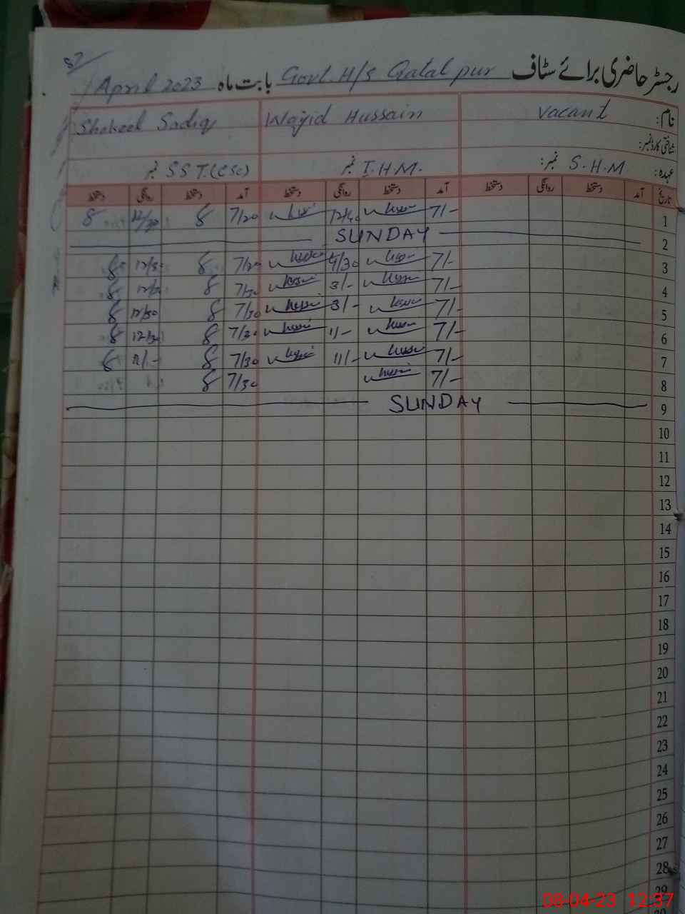 | 36**** | Kh**** Ha**** | SST | Regular | 0 | 0 | 0 | 0 | 0 | 0 | 0 | 0 | 0 | Exam Duty |