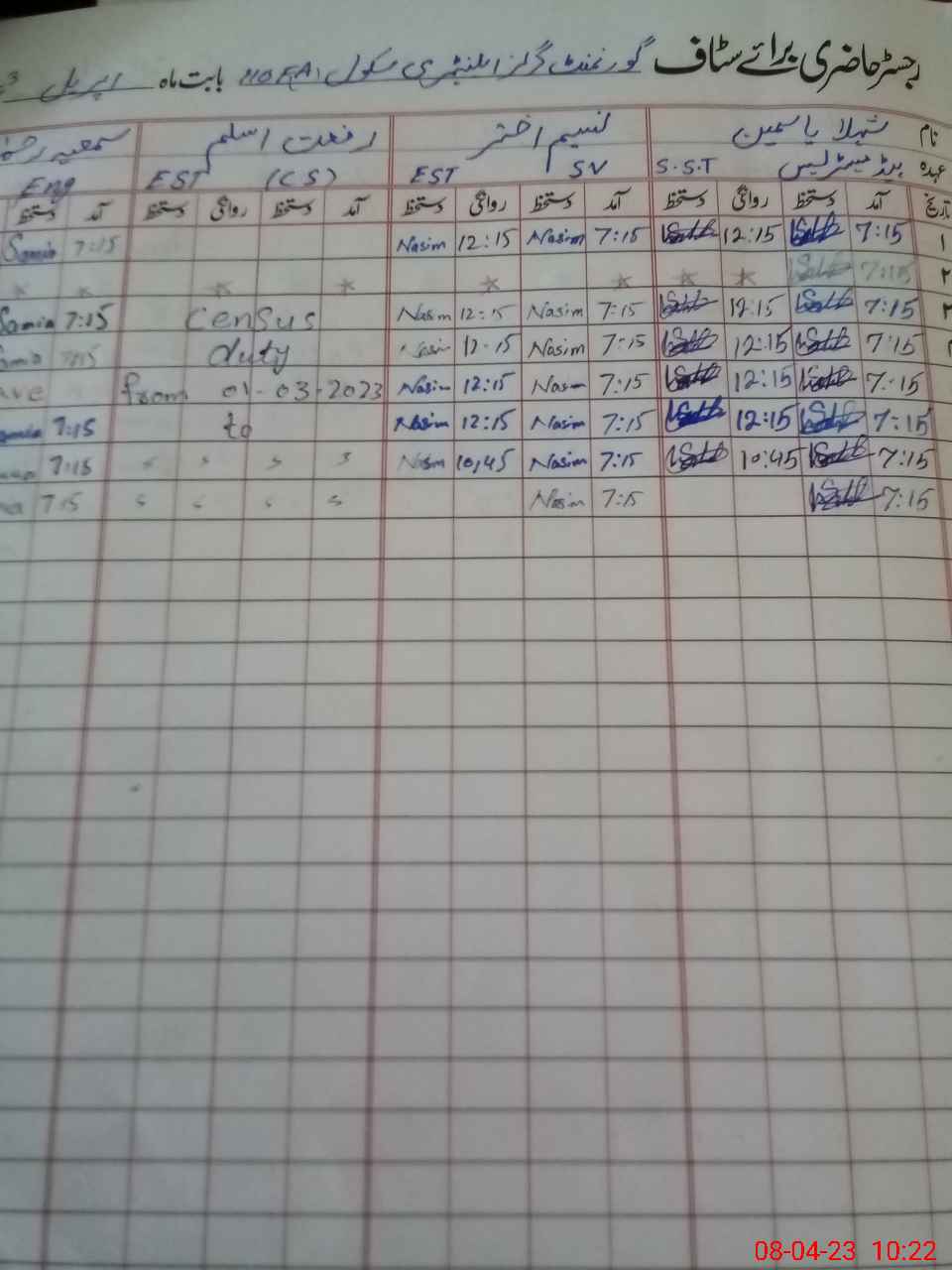 | 35**** | Sa**** Ha**** | Contract | 0 | 0 | 0 | 0 | 0 | 0 | 0 | 0 | 0 | Exam Duty | |