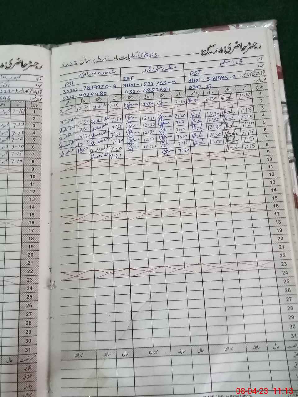 | CNIC | Full Name | Designation | R/C | Absence during last cal. month |
