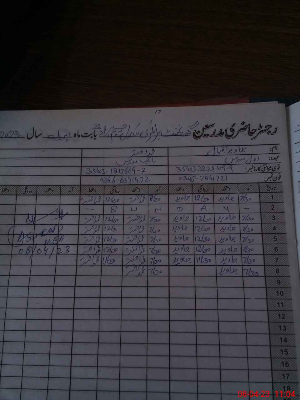 | Name: MU**** NA**** Designation: (School Headmaster's/Headmistress's) ESE Phone/Cell Number: 03**** |