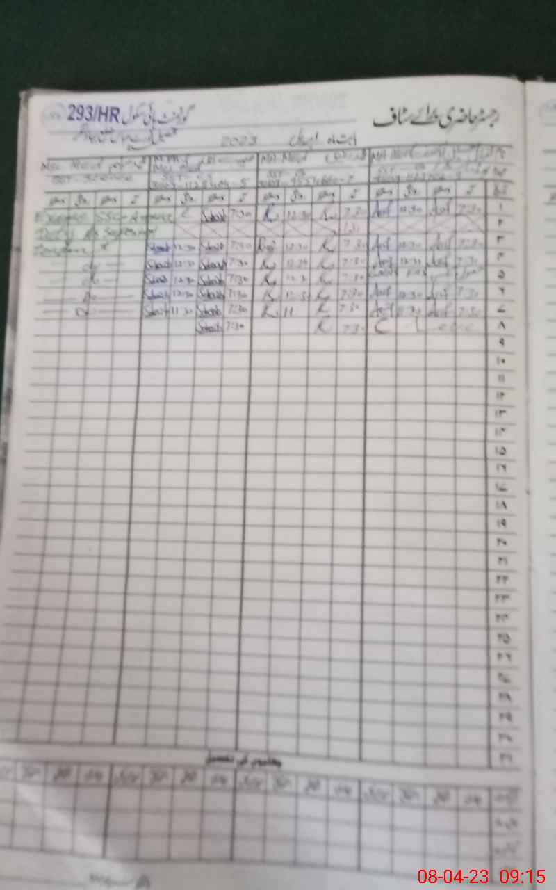 | CNIC | Full Name | Designation | R/C | Absence During Last Calender Month |