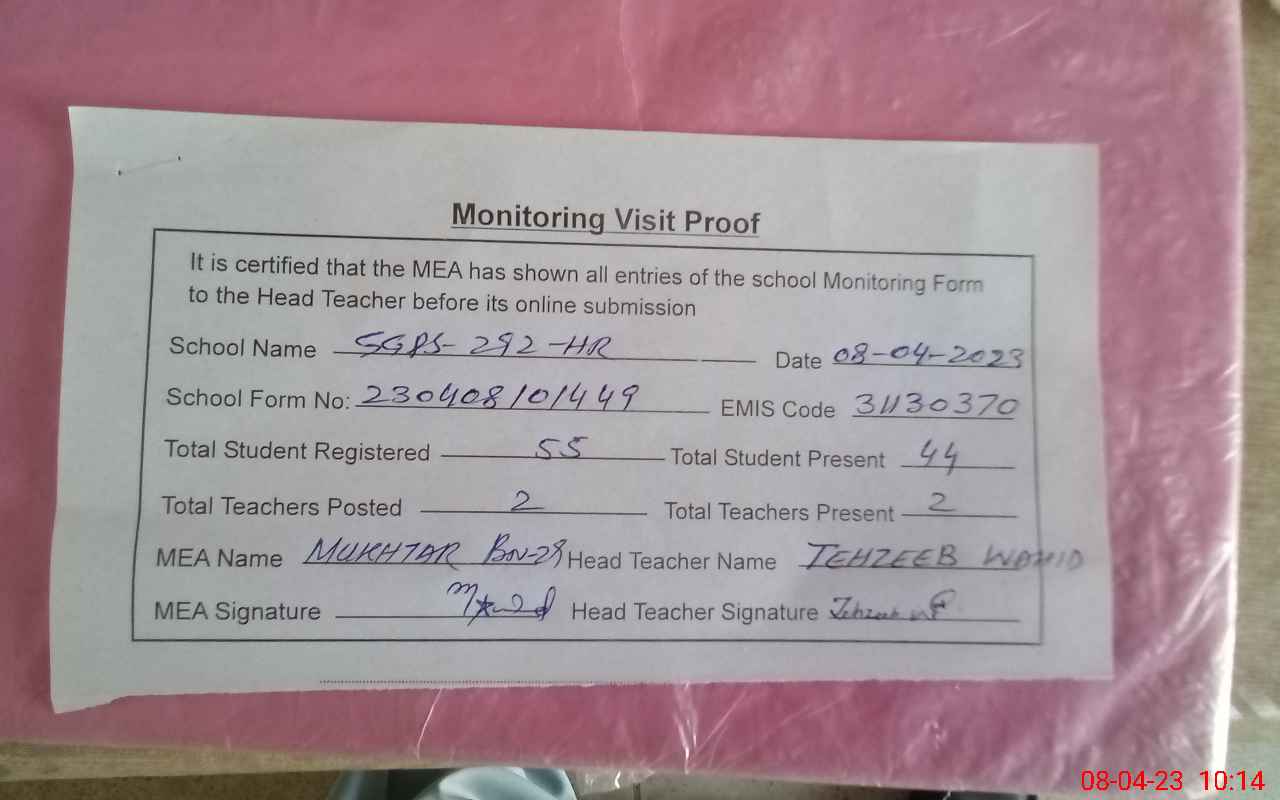 | EMIS Code: 31130370 | Name of School: GGPS CHAK NO 292/HR | |||