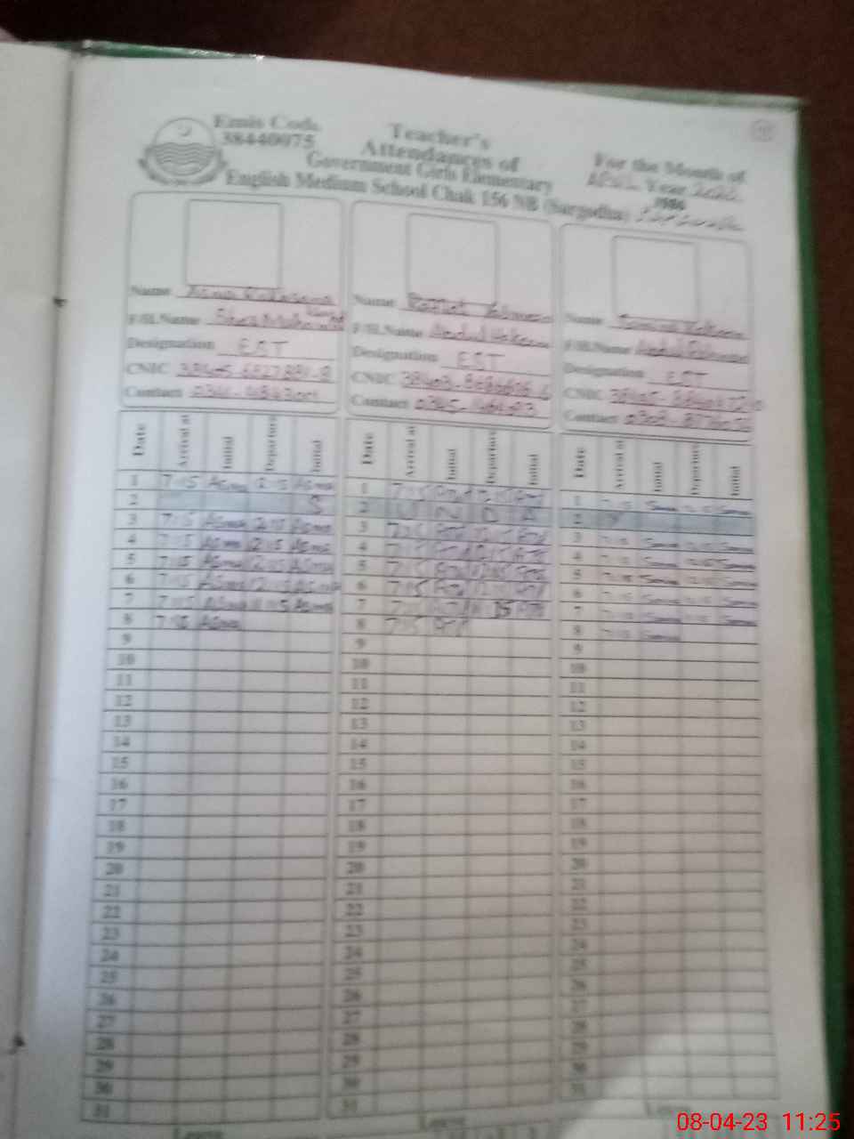 | District: SARGODHA | Tehsil: SILLANWALI | Markaz: SHAH NIKDAR - FEMALE | Level: Middle | |