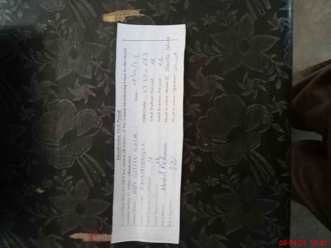 | Attendance Register | Head Teacher | MEA with School | Visit Proof |