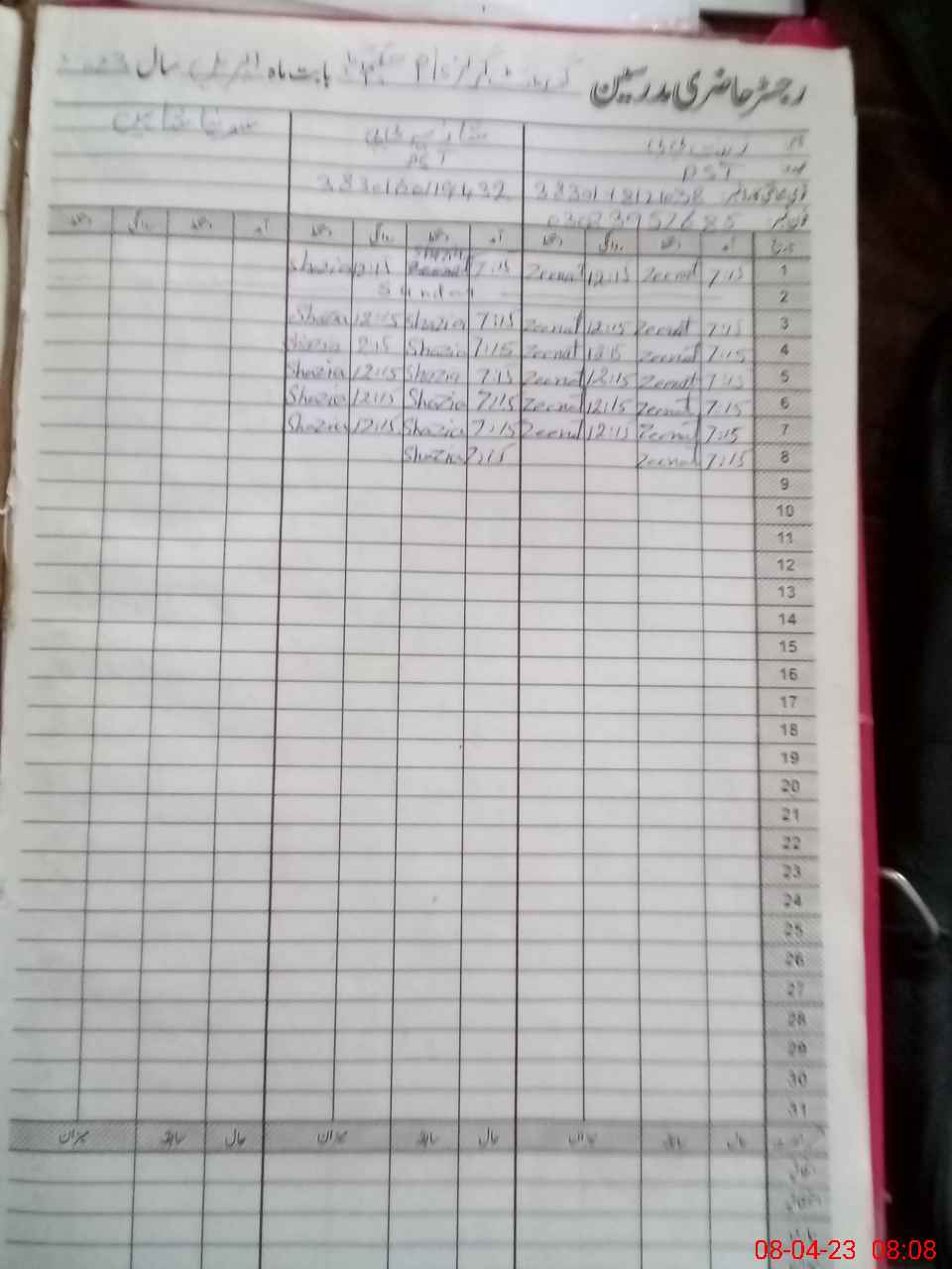| Name: Ze**** Bi**** Designation: (School Headmaster's/Headmistress's) PST Phone/Cell Number: 03**** |