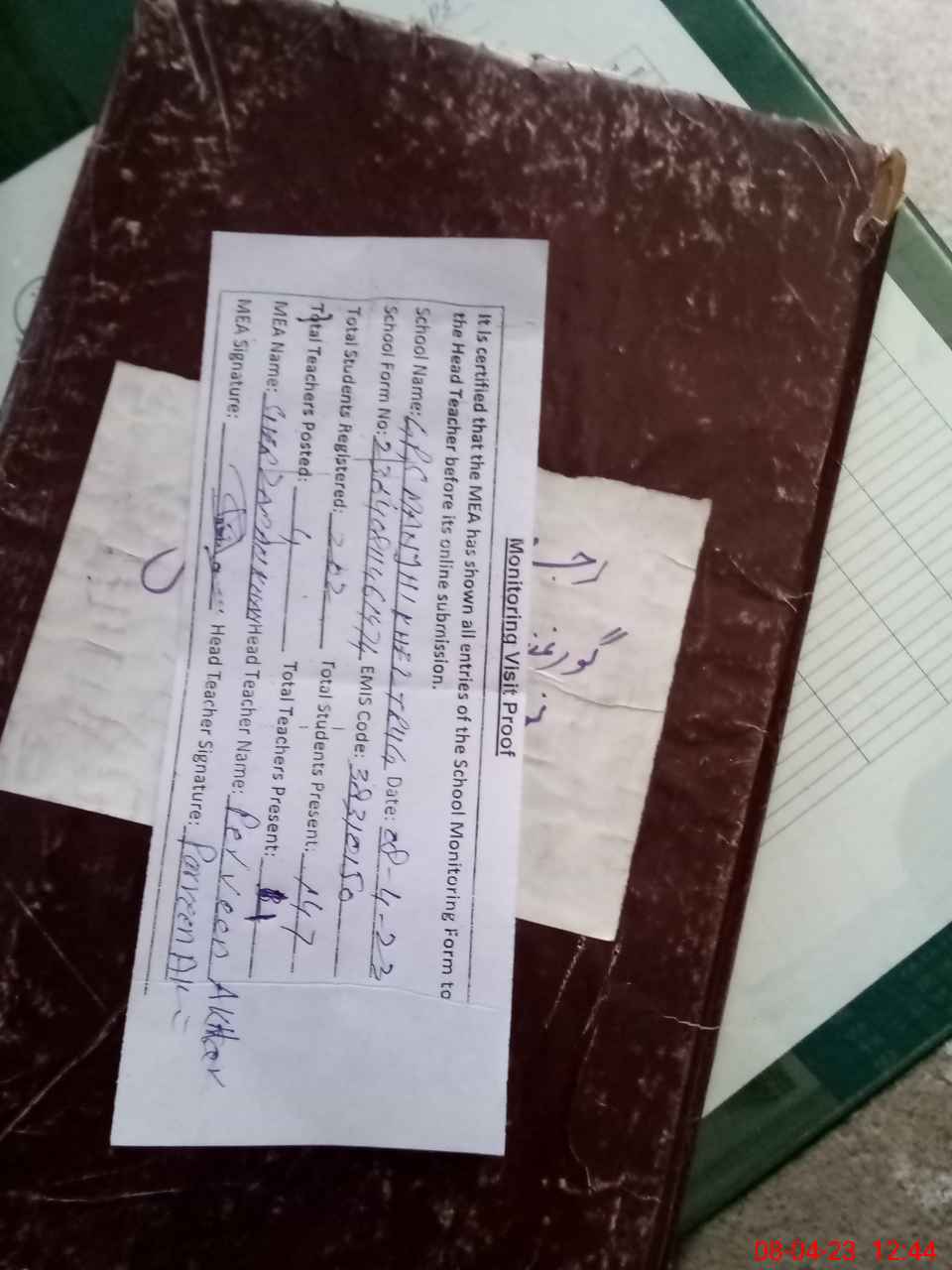 | Attendance Register | Head Teacher | MEA with School | Visit Proof |