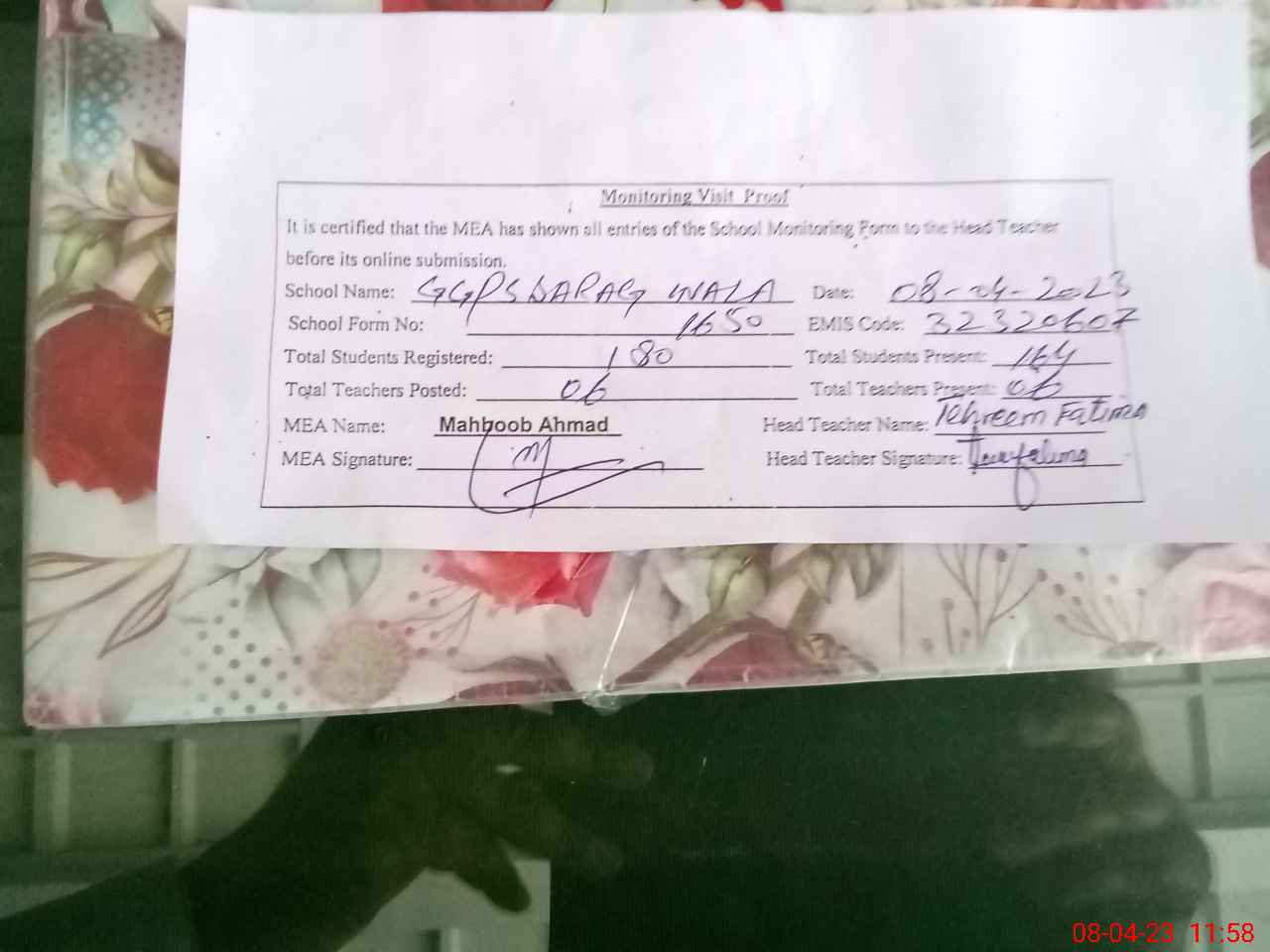 | EMIS Code: 32320607 | Name of School: GGPS SARANG WALA | |||