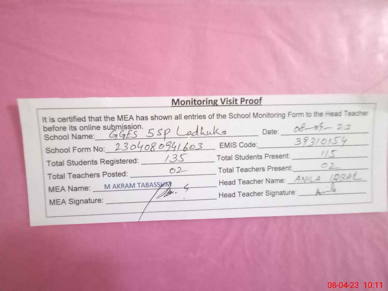 | EMIS Code: 39310154 | Name of School: GGES 5/S.P LADHUKA | |||