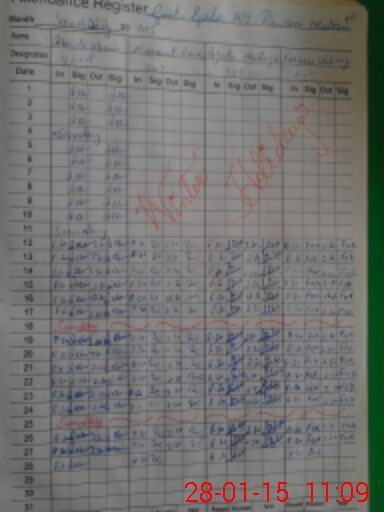 | Monitoring Date: 28-01-2015 | Start Time: 28-01-2015 10:24 AM | End Time: 28-01-2015 11:11 AM | Name of MEA: NA**** AH**** | |